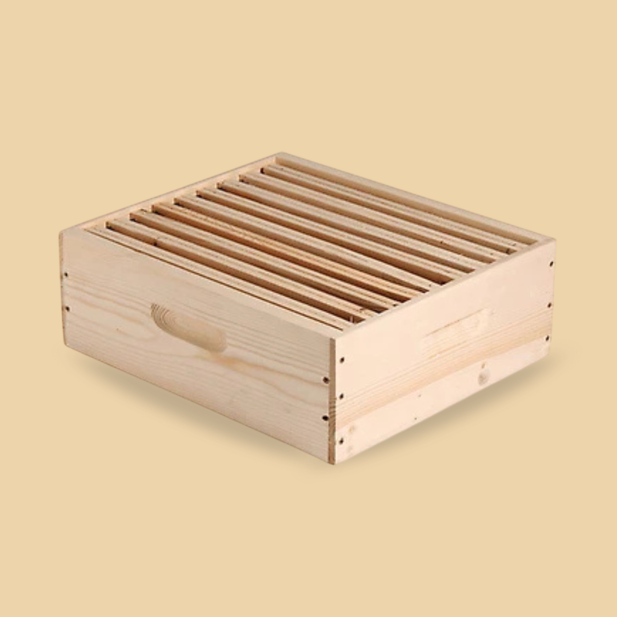 Fabriquée en bois robuste et durable, la hausse Langstroth offre une excellente résistance aux conditions extérieures tout en assurant une bonne isolation thermique. Sa conception précise garantit un espacement idéal des cadres, favorisant une construction régulière des rayons et une récolte de miel plus efficace.